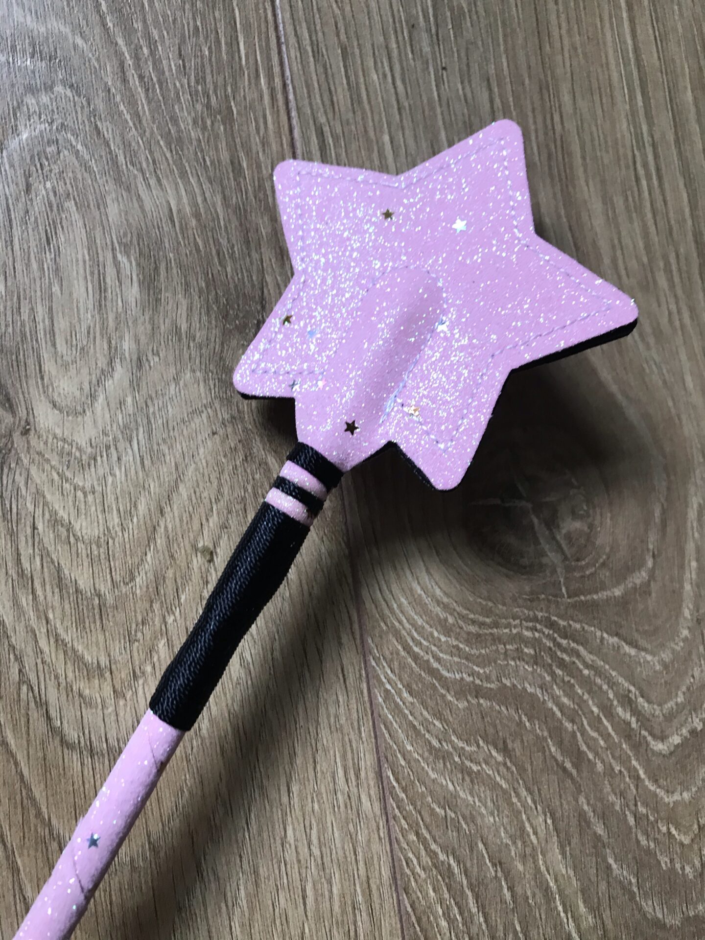 A fun and effective crop. There is no leather, so this crop is vegan friendly, but not subbie friendly as it gives a suprising slap! The crop is 64cm long. The star is 8cm long and 8cm wide.