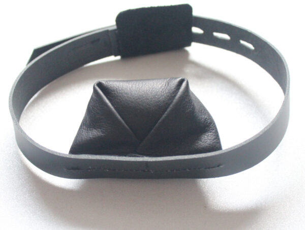 A great real leather gag for experienced players. The gag is made from a reasonably firm foam inside the leather, so there is some compression to fit inside the mouth well, ensuring a lovely full feeling. The leather strap is adjustable and will fit most, but this item is made in-house at Bondatrix, so please provide your measurement around your head at mouth level if you would like it made to measure for no extra cost.