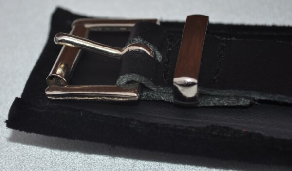 It is made from black leather, and features welded D-rings and sturdy buckles. The set is double stitched throughout, making it stronger than many riveted sets, as the pressure is spread over a larger area. This makes it suitable for heavy bondage use.