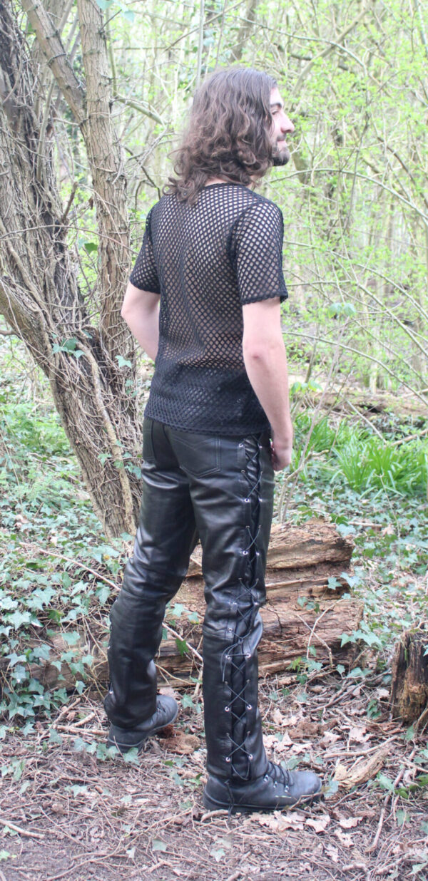 A classic alternative men’s top. Cool to wear in clubs, making far more of a statement than a bare chest. Also ideal for layering – wear under a waistcoat or chest harness for a different look.