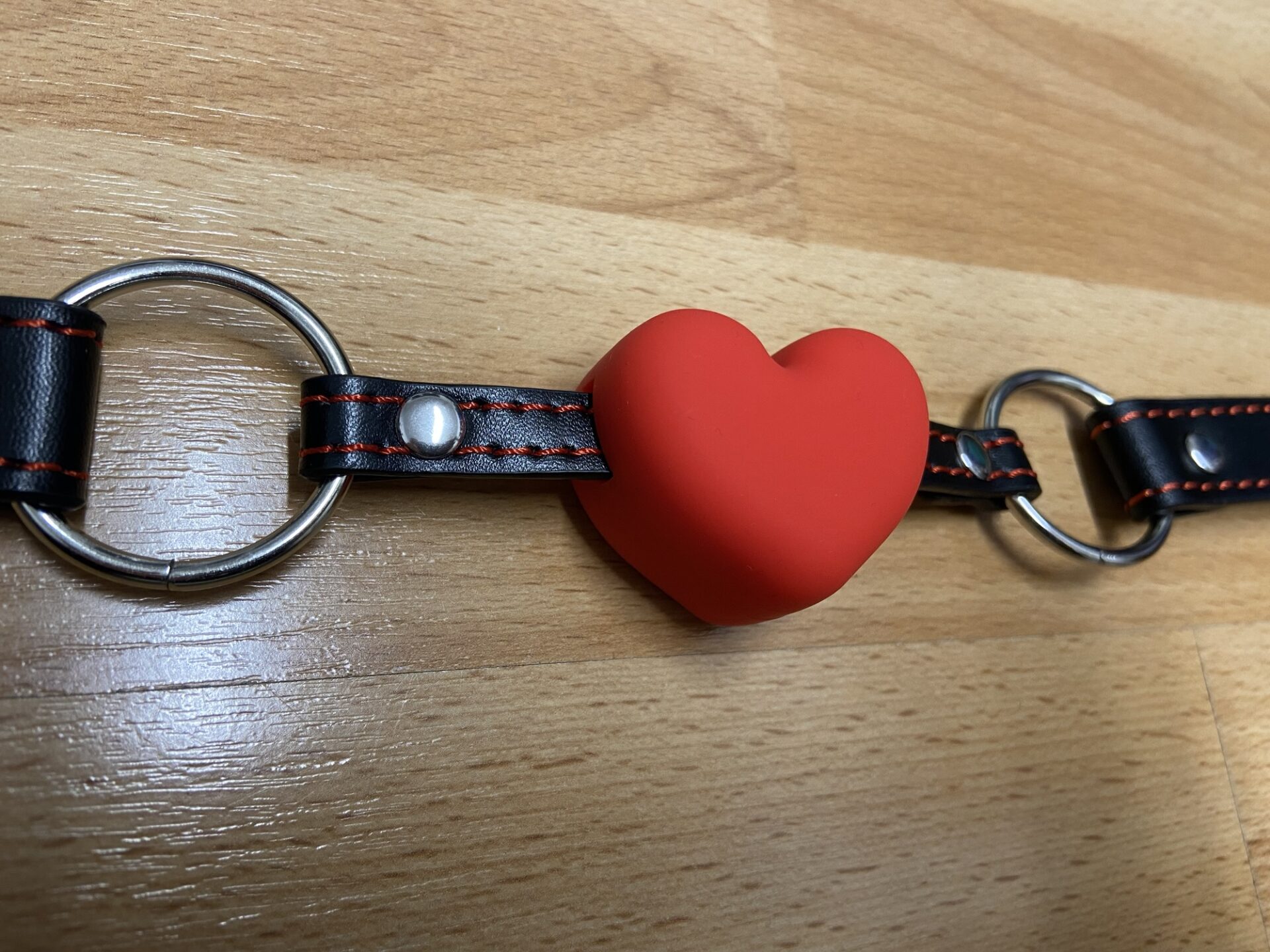 A cute gag with a silicone heart centre. The heart is a nice size for those new to gags, making it a great beginner product. The strap is vegan pleather, with a buckle, making it adjustable and suitable for all.